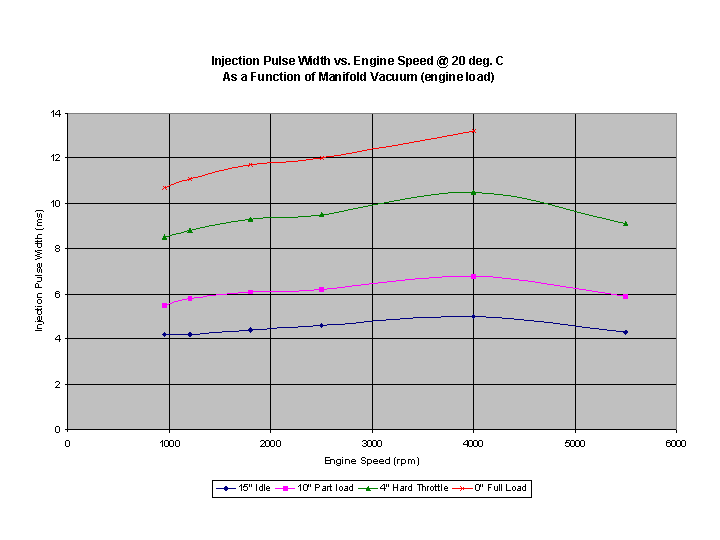 2.0 - 3/20/02 - Added additional graphs of injection duration vs. engine speed as a function of load, taken with my EFI Analyzer |