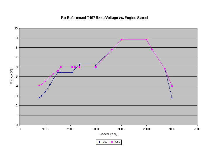 These results are very interesting. First, they point out that once TS2 drops below about 100 ohms on Vout for both the 037 and 052 ECU's, any subsequent decrease in resistance has little to no effect on Vout. They also show that there are significant differences in the warm-up characteristics of the two ECU's. The 052 is leaner during warm-up, but essentially the same once fully warmed-up. I do not have an 043 or 044 ECU that is disassembled to compare these results to, and the 015 ECU that I have has a completely different CTC circuit that I have yet to analyze.